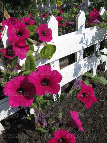 Цветы петунии в саду