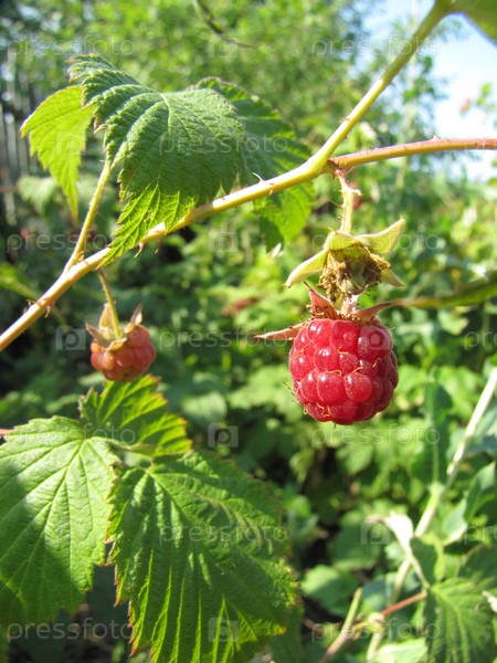 Спелая малина на ветке