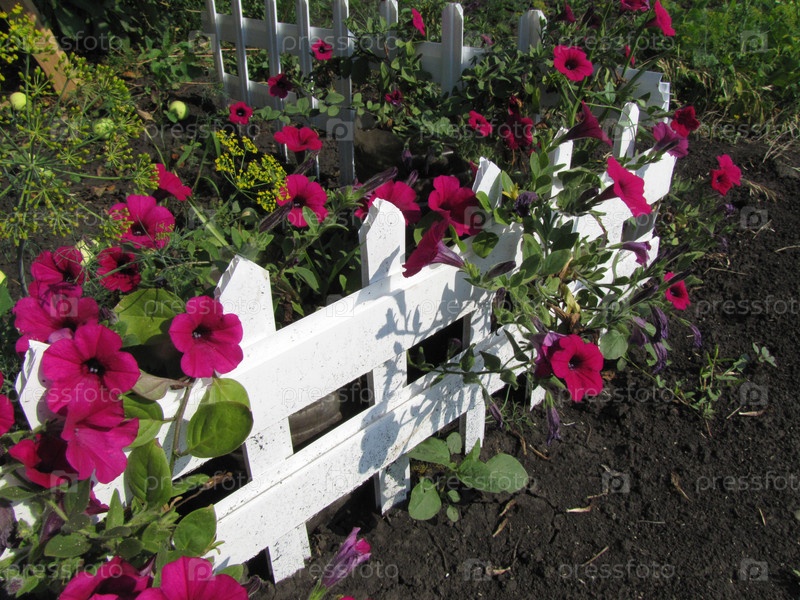 Цветы петунии в саду