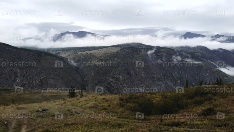 Облака, обнимающие горные вершины в спокойном пейзаже