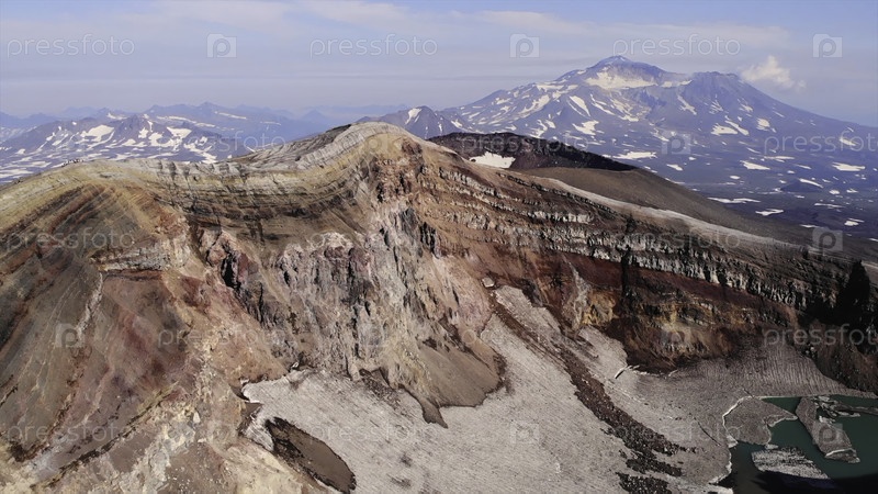 Вид с воздуха горького вулканического кратерного озера в Камчатке