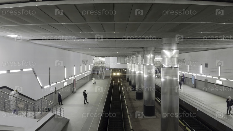 Пассажиры, ожидающие поезд прибывающий на станцию метро "Окружная"