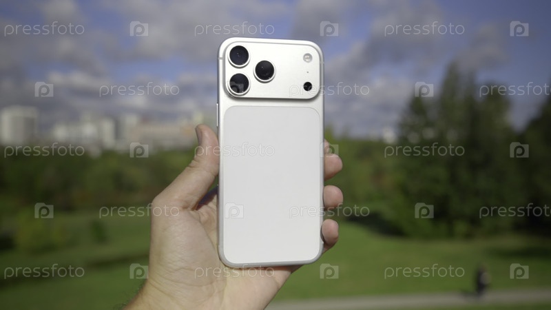 Тбилиси, Грузия - сентябрь 2025 года: в руках новая концепция смартфона с тремя камерами