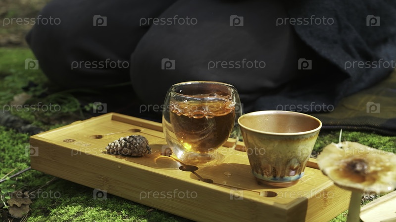 Успокаивающее видео демонстрирует спокойные чаевые моменты, устроенную чашку на подносе, человека, выпивающего в природе, тихие сцены и две чашки, приглашающие к общению