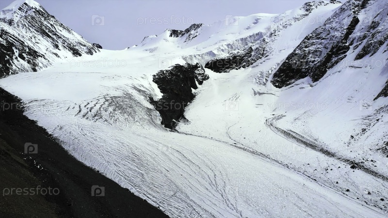 Величественный ледник тает в обширной горной цепи.СМИ
