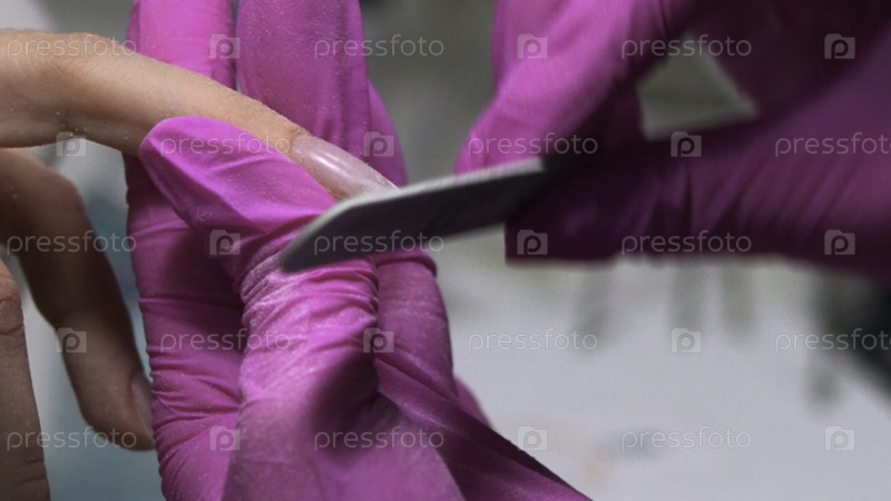 Ближайшее изображение очищенного миндального края ногтей с файлом и буфером, обеспечивающим гладкий силуэт и тонкие детали