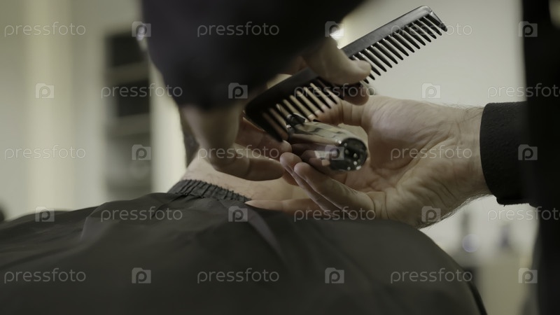 Профессиональный парикмахер режет волосы с помощью электрической стрижки