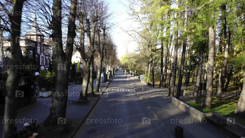 Вид с воздуха тихой пешеходной улицы в старом европейском городе