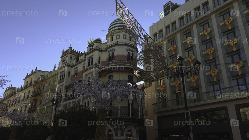 Декоративное здание с праздничными особенностями, городская сцена с декорированной архитектурой и торжествами