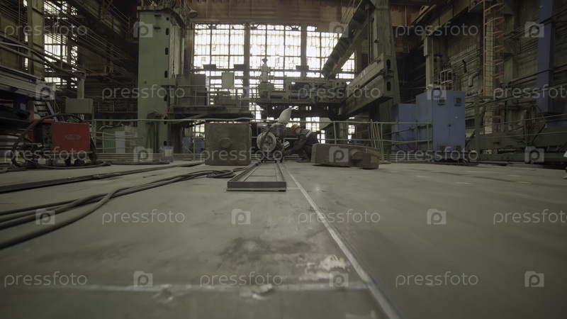 Большой металлический лист, постепенно покрывающий пол на фабрике