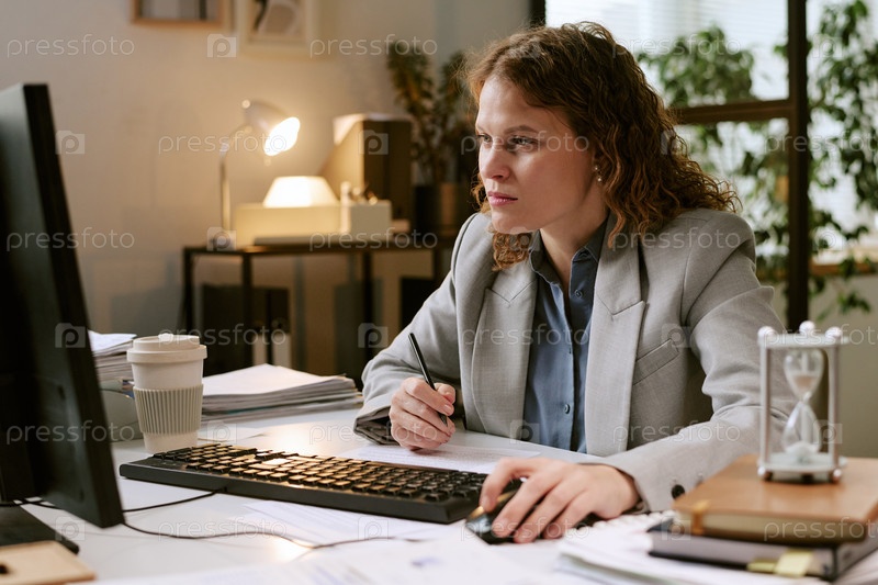Молодая женщина, работающая за столом в современной бизнес-офисной обстановке