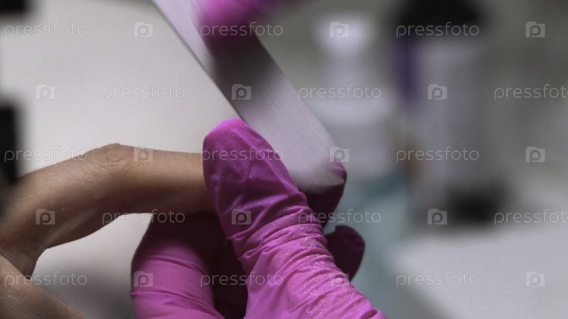 Клозум для сглаживания поверхности ногтей с помощью буфера и подачи документов перед применением топового покрытия в ухоженном салоне