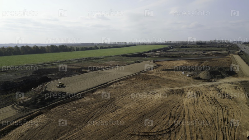 Строительные машины работают на новой дороге