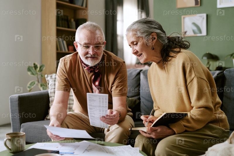 Старший кавказский мужчина и старшая кавказская женщина вместе просматривают финансовые документы
