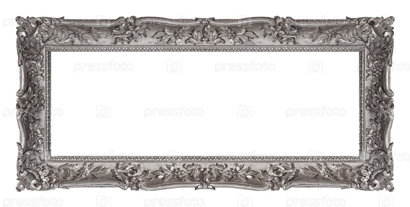 Панорамная серебряная рама для картин, зеркал или изолированной фотографии на белом фоне