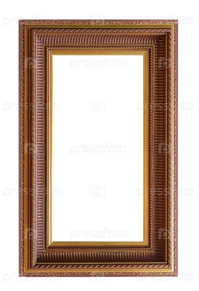 Панорамная деревянная рама для картин, зеркал или фотографии изолированной на белом фоне с готовым вырезом