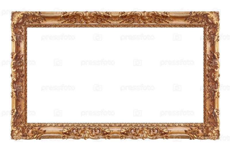 Панорамная золотая рама для картин, зеркал или изолированной фотографии на белом фоне