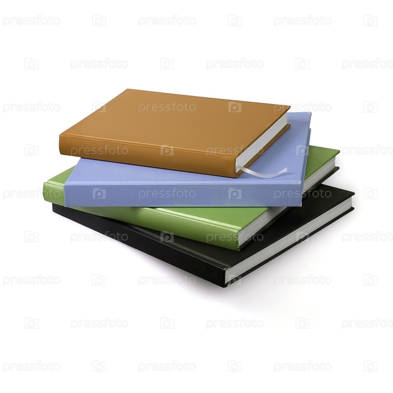 Куча книг в цветных обложках с белыми листами, изолированными на белом фоне