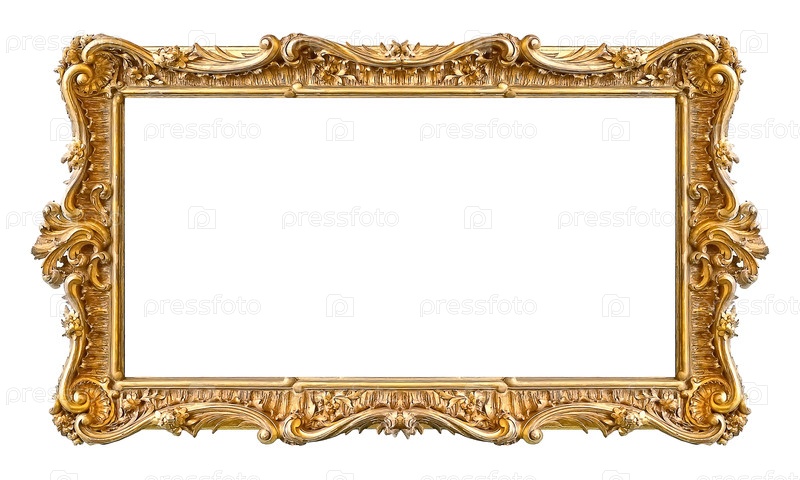 Золотая панорамная рамка для картин, зеркал или фото, изолированная на белом фоне