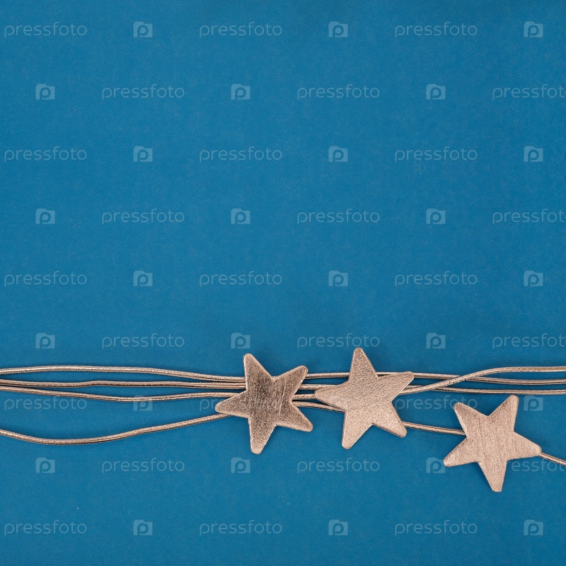 Традиционный рождественский синий фон с серебряными лентами и звездами для приветственных букв / объявлений