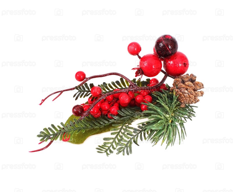 Мокет: Рождественские украшения: ветвь рождественской елки, ягоды и конус