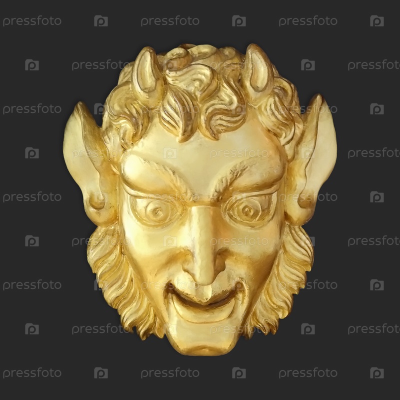 Золотая маска в виде древнего божества Сатира (декоративное украшение Государственного дворца-музея Павловск, Санкт-Петербург, Россия, 19 век)