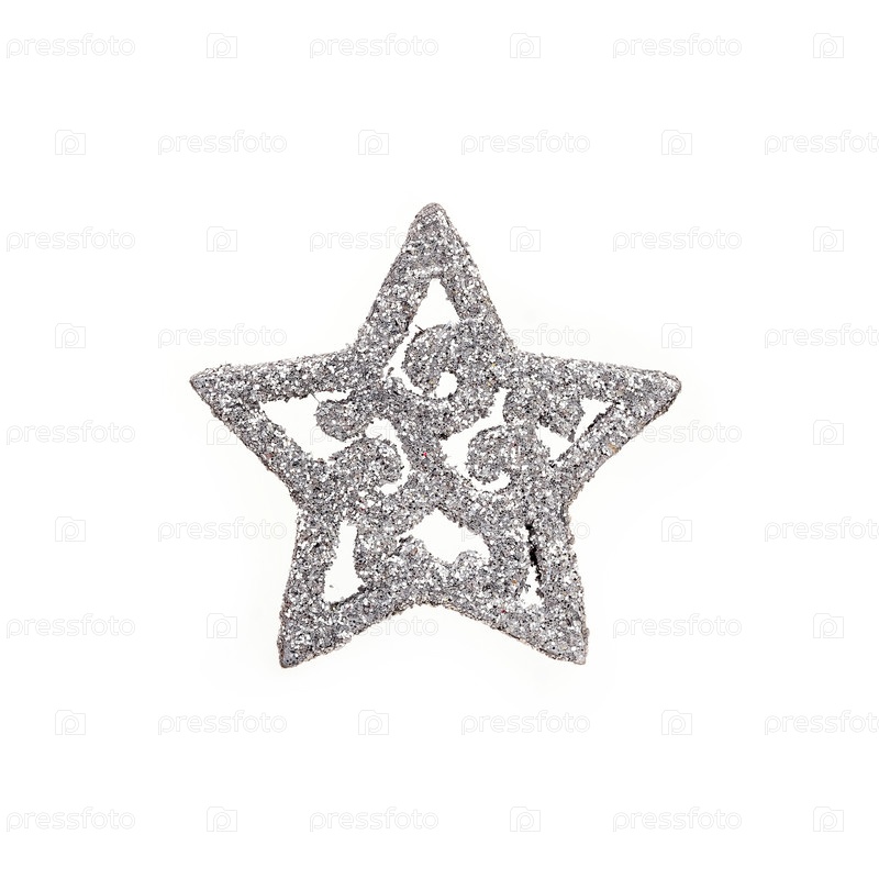 Серебряная декоративная рождественская звезда изолирована на белом фоне