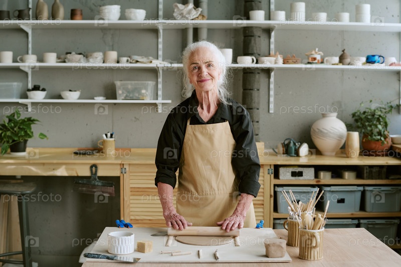 Портрет старшей женщины, формирующей глину в керамической мастерской