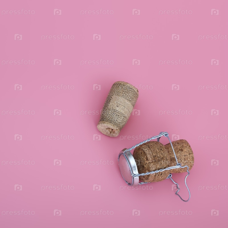 Мокап: Шампанское и винная пробка изолированы на розовом фоне