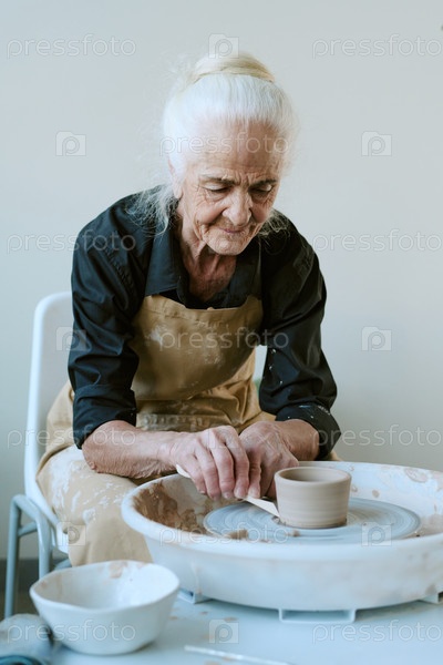 Женщина, формирующая глину на керамическом колесе в студии Senior Setting