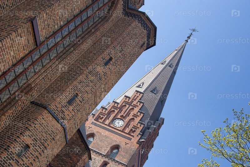 Весенний вид башни церкви Святого Петра в Мальме, Швеция