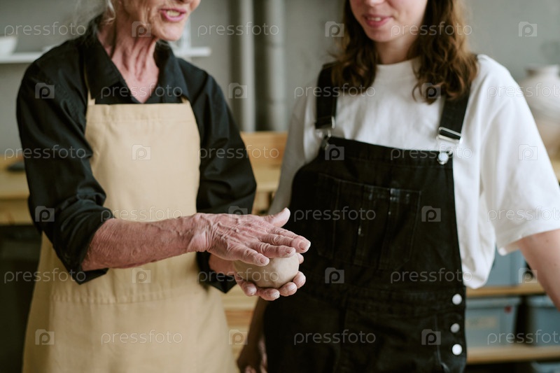 Старшая женщина обучает молодую взрослую женщину формированию глины в мастерской
