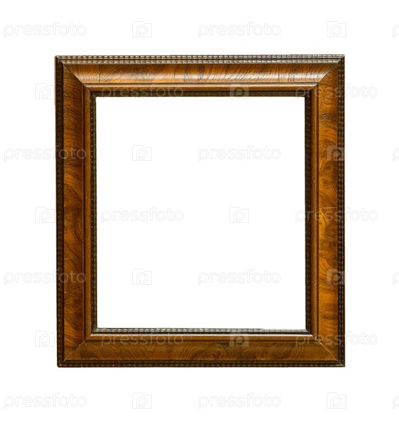 Деревянная рама для картин, зеркал или фотографии изолирована на белом фоне, вырезка готова