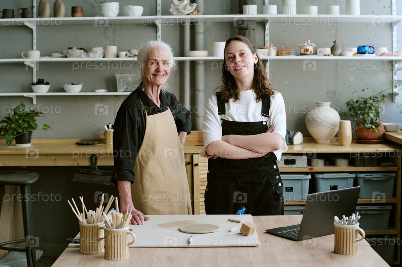 Старшая женщина и молодая взрослая женщина работают в керамической студии