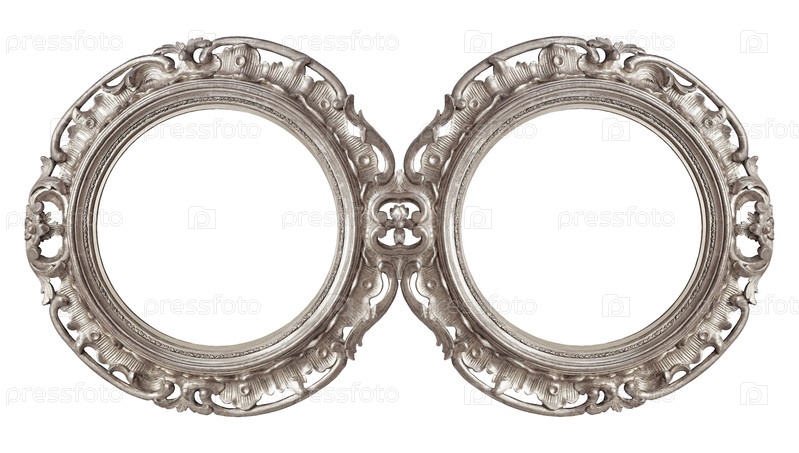 Двойная серебряная рама (диптих) для картин, зеркал или фотографий, изолированных на белом фоне