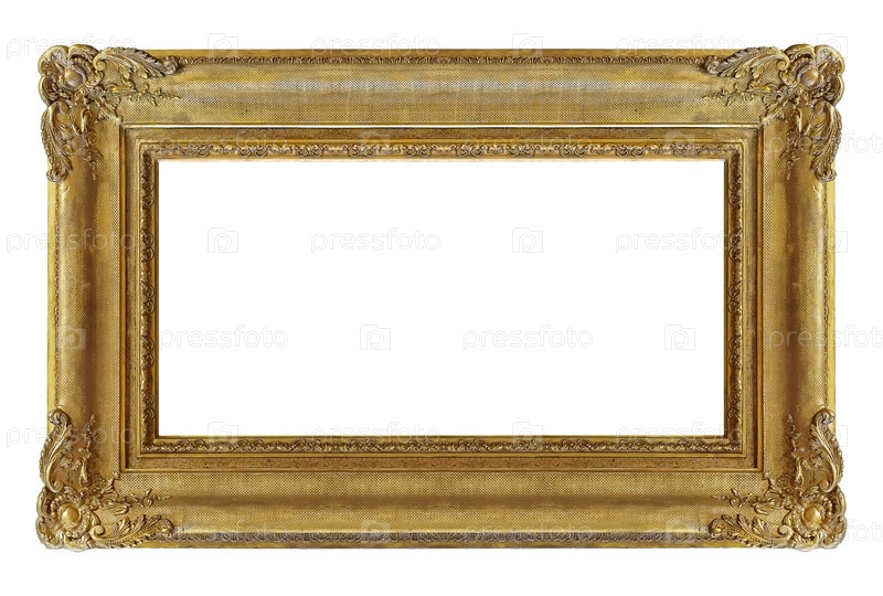 Панорамная золотая рама для картин, зеркал или изолированной фотографии на белом фоне