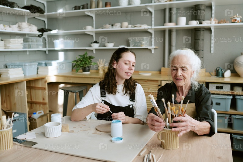 Пожилая женщина и молодая взрослая женщина рисуют вместе