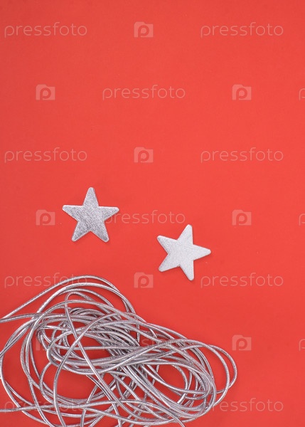 Традиционный рождественский красный фон с серебряными лентами и звездами для приветственных букв / объявлений