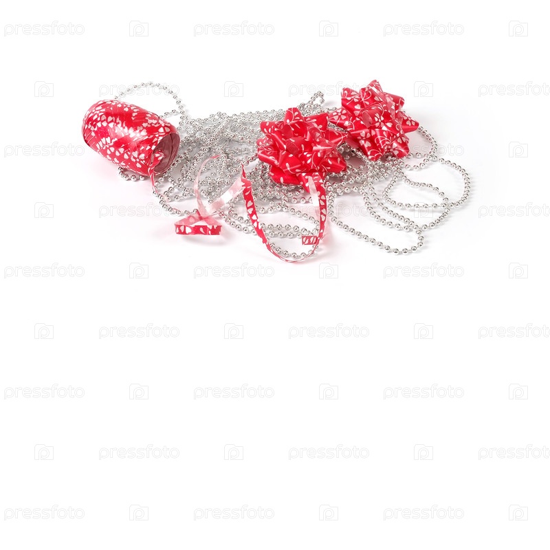 Оформление поздравительной карточки с красными и серебряными гирляндами для открытки или плаката с пустым местом для надписи