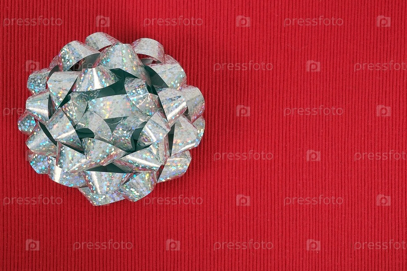 Блестящие снежинки и декоративные луки изолированы на красном фоне