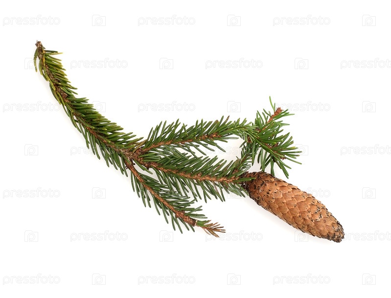 Ветка рождественской елки изолирована на белом фоне для создания поздравительных открыток, плакатов и баннеров