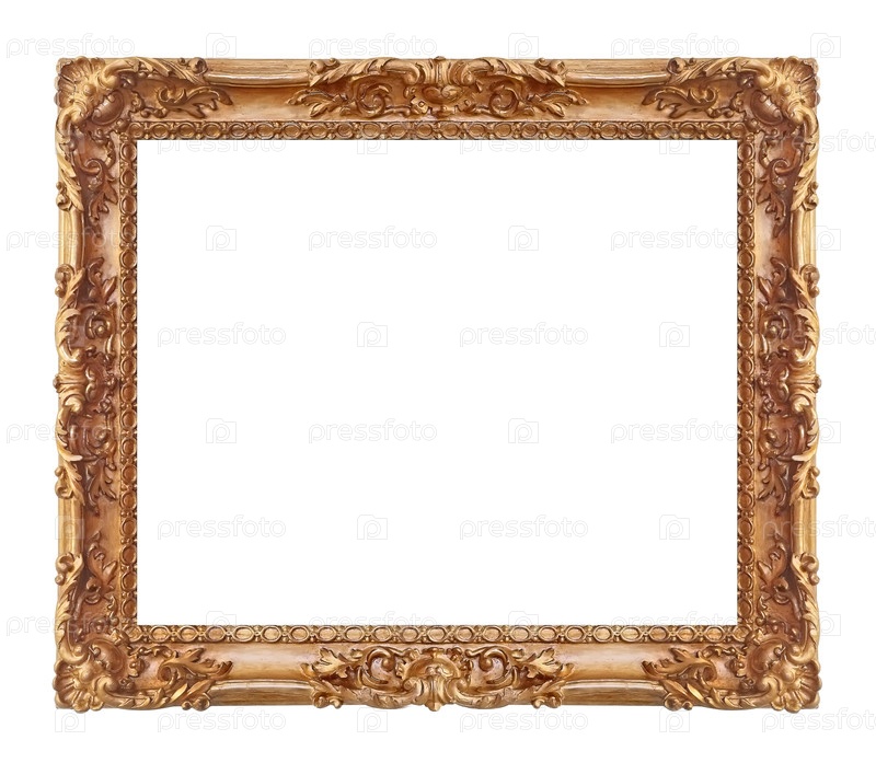 Золотая рама для картин, зеркал или фотографии изолированной на белом фоне