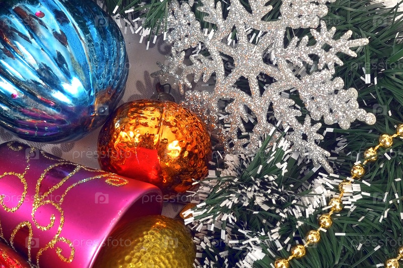 Гирлянда и рождественские игрушки (шаблон новогоднего фона)