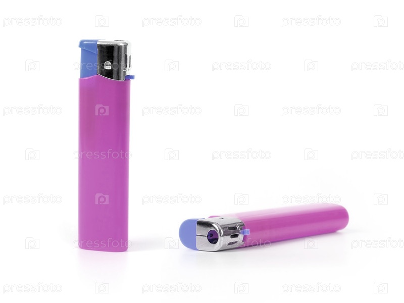 Розовая пластиковая зажигалка изолирована на белом фоне