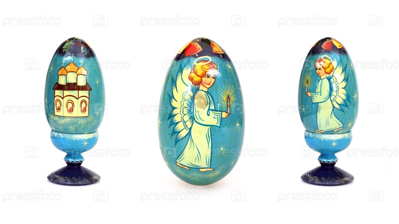 Набор рождественских деревянных яиц, нарисованных вручную и изолированных на белом фоне
