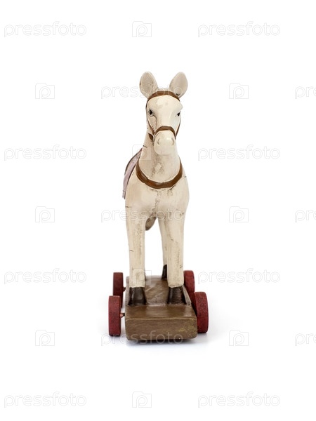 Лошадиные кресла на колесах (игрушка для рождественской елки) изолированы на белом фоне