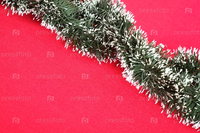Шаблон для Рождественские поздравления: зеленая рождественская гирлянда на красном фоне