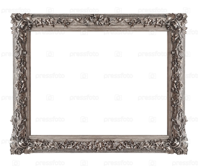 Серебряная рама для картин, зеркал или изолированной фотографии на белом фоне