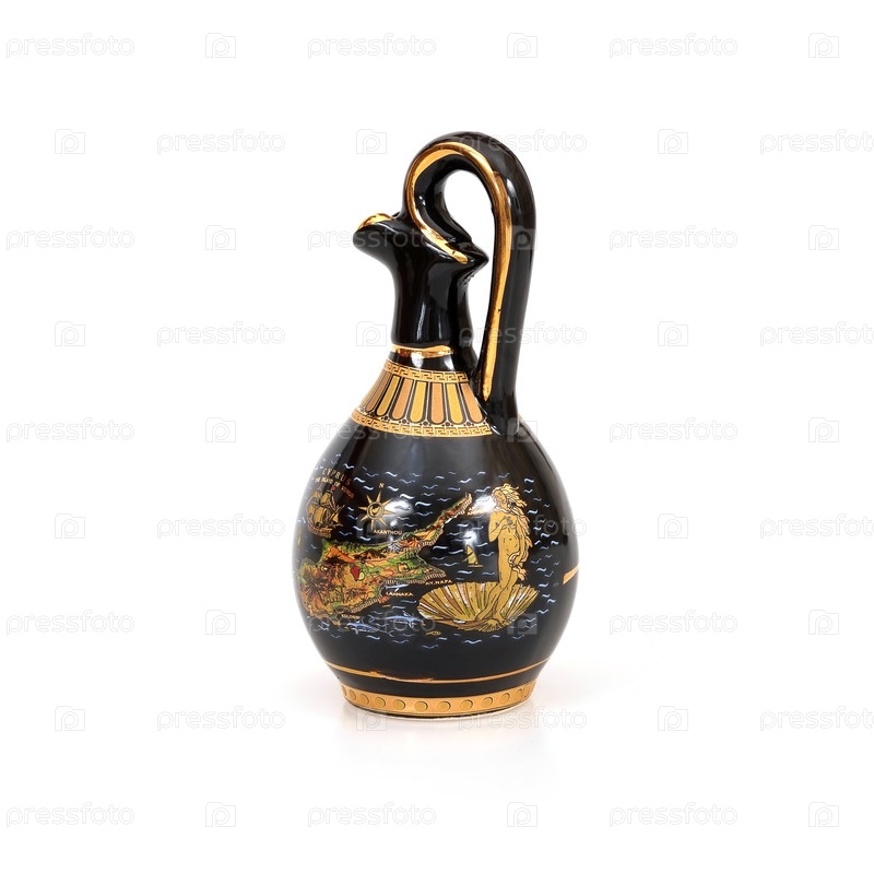 Копия древнегреческого черного сосуда для вина, изолированного на белом фоне