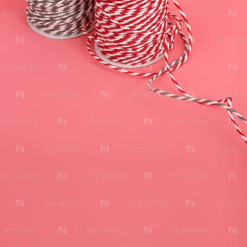 Рождественская композиция с веревками, изолированными на розовом фоне